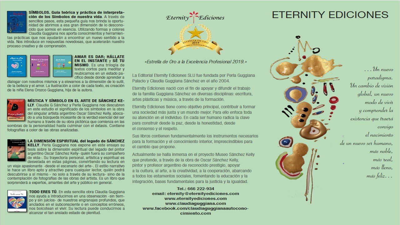 Eternity Ediciones nació con el fin de apoyar y difundir el trabajo de la familia Guggiana Sánchez en diversas disciplinas: escritura, artes plásticas y música, a través de la formación.