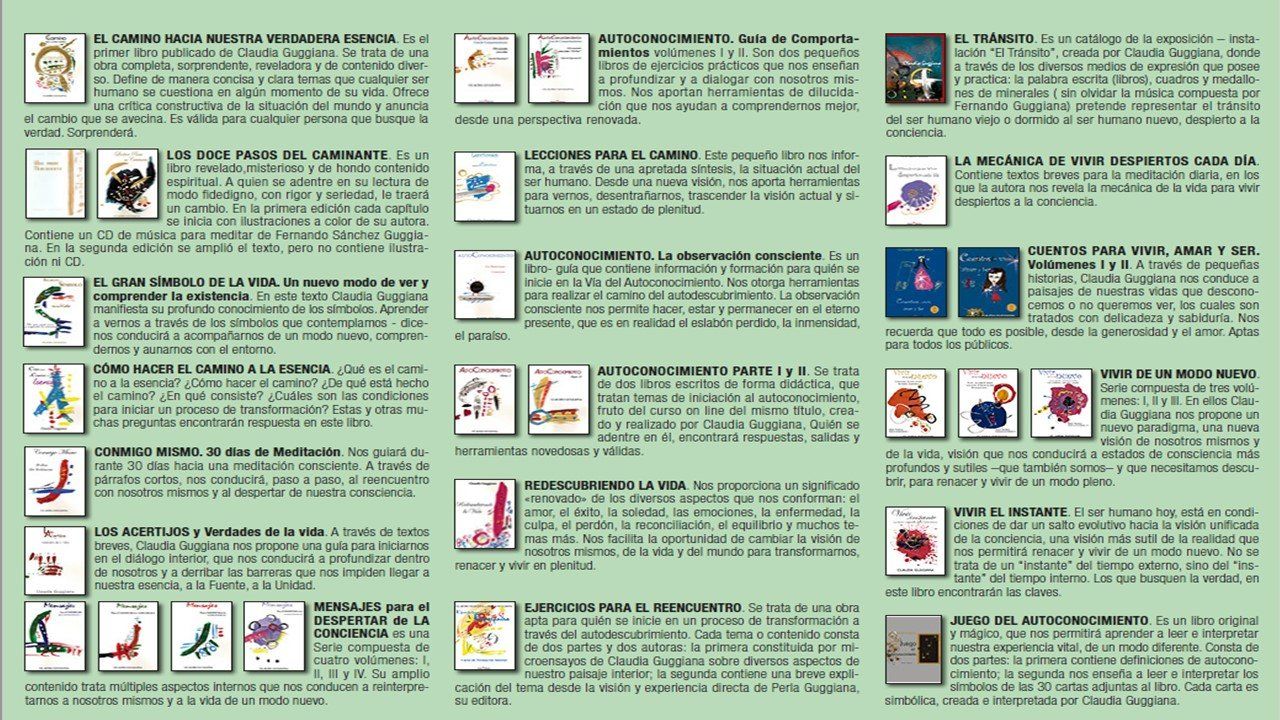 Sus libros contienen fundamentalmente los instrumentos necesarios para introducirnos en el conocimiento interior, imprescindible para el cambio que propone.